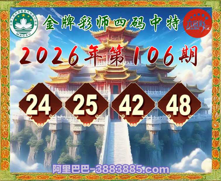106期: 🌷『金牌彩师』 🌷四码中特🌷【24.25.42.48】开:22